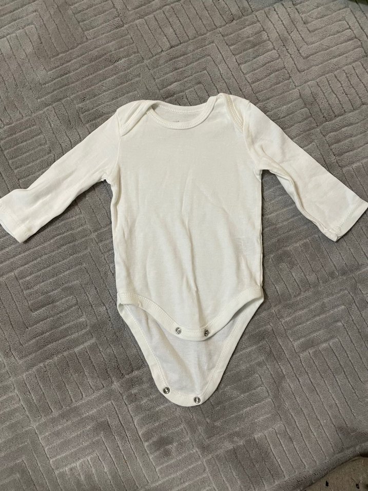 Bebek 6 ay zıbın, az kullanılmıştır… Bebekler için uzun kollu, yuvarlak yakalı beyaz body. Kolay giyilip çıkarılabilen çıtçıtlı tasarıma sahip, sade ve şık bir parça.