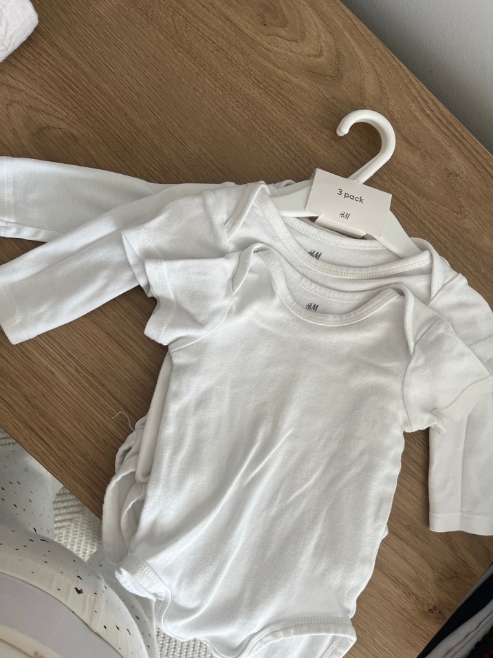 Yumuşak pamuktan üretilmiş, beyaz uzun kollu, çıtçıtlı 4lü bebek body seti.