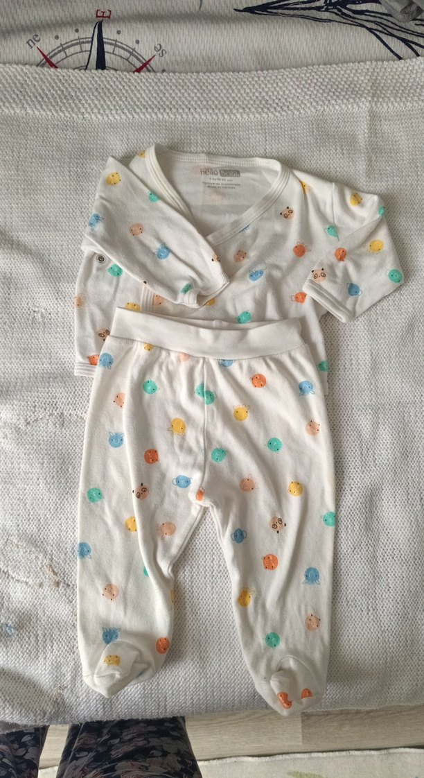 Pamuklu, baskılı, kısa kollu ve düğmeli bebek erkek takımı. Pastel renklerde yumuşak ve rahat kumaştan üretilmiştir.