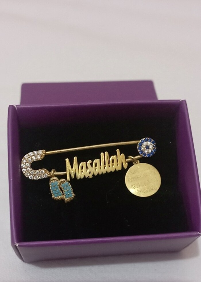 Erkek bebek gümüş,nazar dualı yaka iğnesi