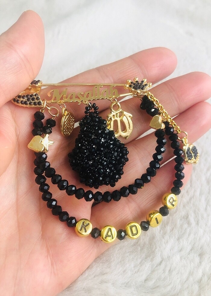 Cevşenli maşallahlı bebek yaka iğnesi.istenilen isim yazılır