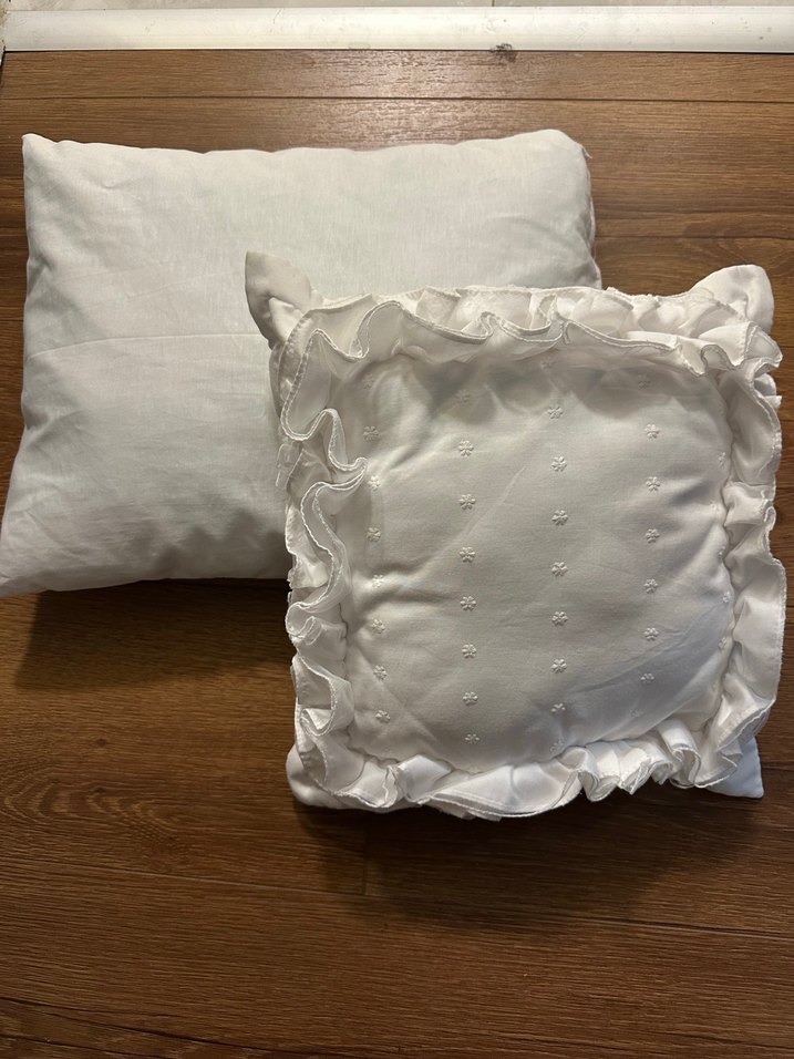 2 adet bebek yastığı tertemiz hiç bir sorunu yoktur. Biri dikdörtgen 35*45 olması lazım ölçüleri diğer işlemeli olan karedir.