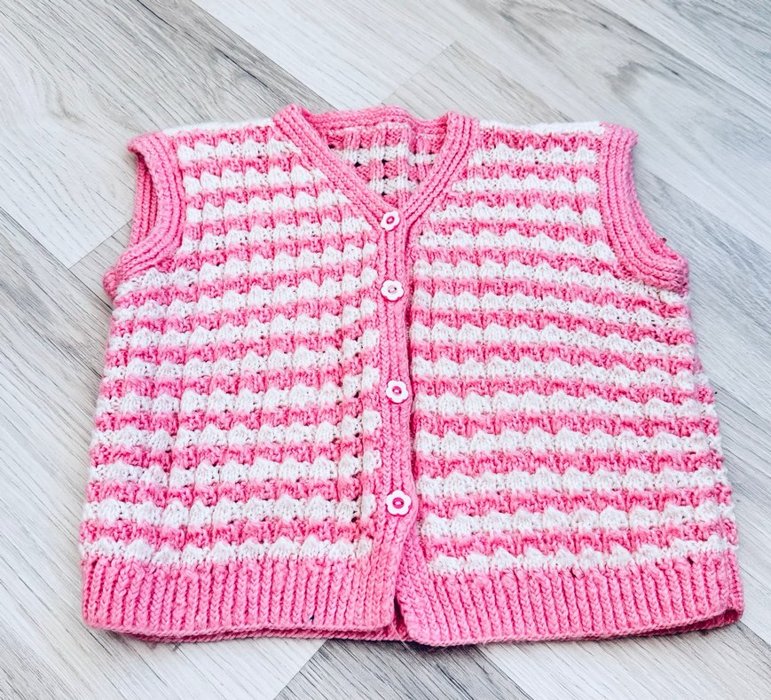 Sadece iki kez giyildi temiz kullanıldı el örgüsü yeni doğan bebek yeleği