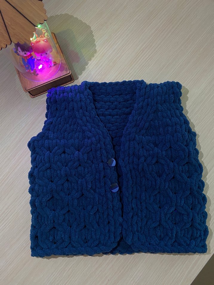 Lacivert ,iki düğmeli , bal peteği modeliyle erkek bebek yeleği