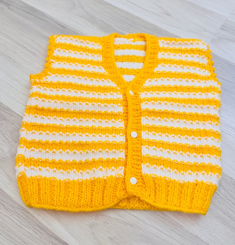 Hiç giyilmedi yeni doğan bebek yeleği el örgüsüdür.