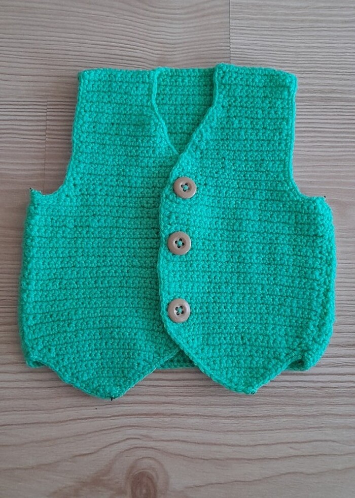 El emeğiyle ördüğüm bebek yelek ve patik. 0-9 aylık bebekler için uygundur.