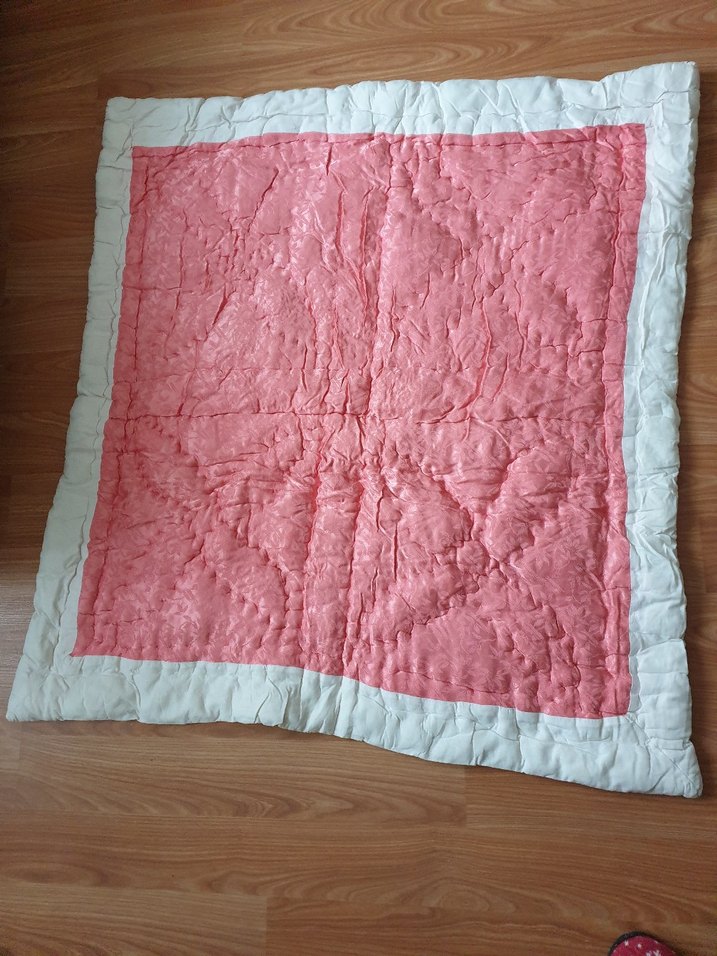 Pastel pembe renkte, sade tasarımlı bebek yorganı Beyaz kenarlığıyla rahatlık ve sıcaklık sağlar. ️93×100 cm. temiz yıkanmıştır