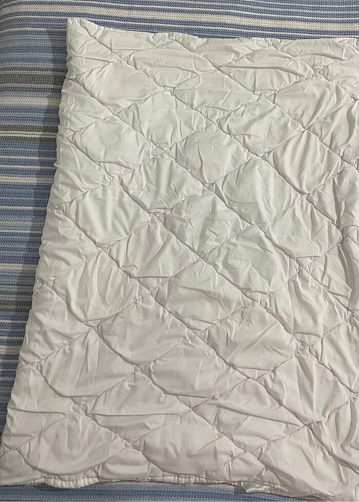 Bebek yorganı, elyaf, az kullanılmış, temiz ve lekesi yoktur. Ölçüleri En:95cm, Boy:145cm.
