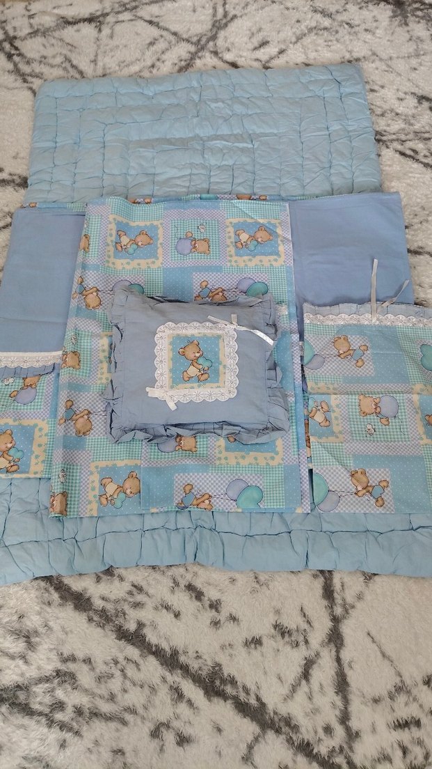 bebek yün yorganı ve nevresim takımı özel dikimdir. yorgan eni 90 cm boyu 137 cm. çarşafı 100*150 cm kullanılmadi desem yeridir tertemiz duruyor. sadece yastık kılıfları kullanılmıştır. yastık kılıf ölçüsü eni 32 cm boyu 46 cm