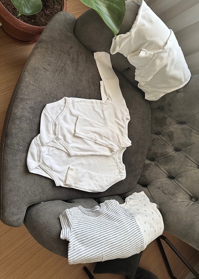 LCW İdil ebebek marka karışık zıbın. 6 tane. 2 tane uzun kollu 4 tane kısa kollu. Bazılarında hafif sararma var. Ayartıcı kullanmadım. Muhtemelen çıkar