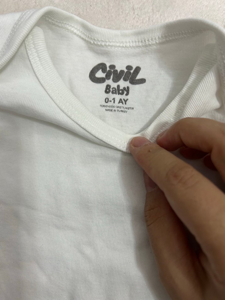 0-1 ay bebekler için beyaz baskılı içlik. Civil Baby marka, yumuşak ve rahat kumaş kullanılmıştır.