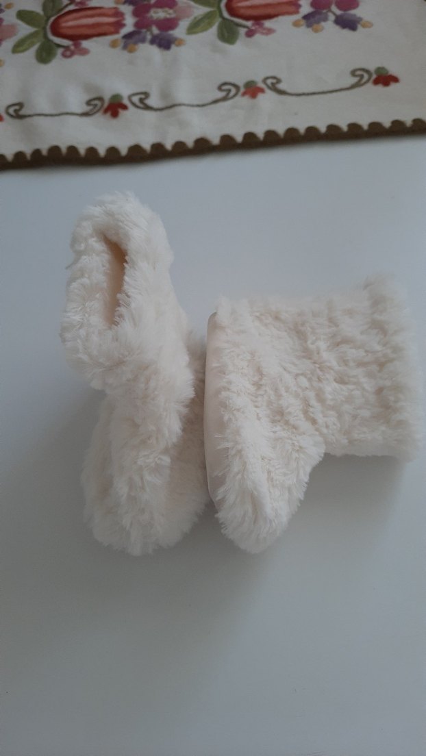 Yumuşak kürk detaylı beyaz kız çocuk pandufu, sade bohem tarzıyla sıcak ve rahat kullanım sağlar.