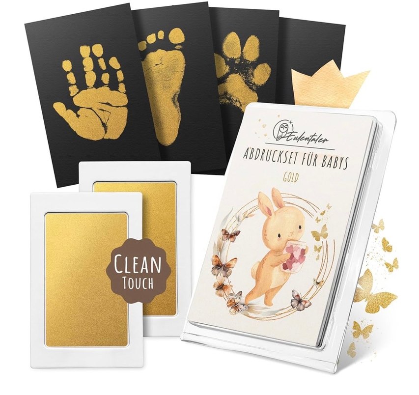 El, ayak ve pati desenli, koyu zemin üzerinde altın renkli bebek baskı seti. Kolay kullanım için temiz dokunuş kartları içerir. Sıfırdır ürün güncel fiyatıni kontrol ederek alım yapabilirsiniz yurt dışından alınmıştır