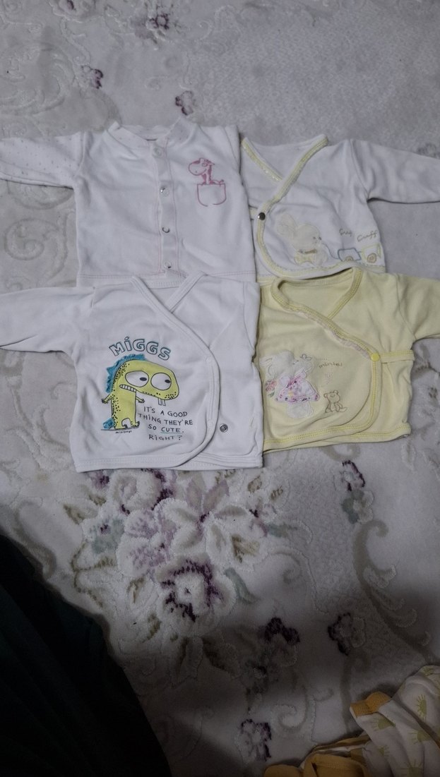 Pastel renklerde baskılı "MiGGS" karakterli yumuşak gömlek bebek hırkaları. Rahat ve sıcak tutar.