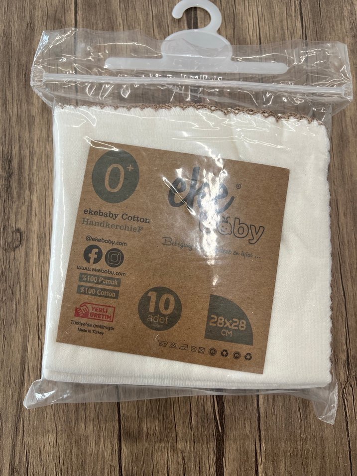 28x28 cm ölçülerinde, %100 pamuk kumaştan yapılmış beyaz baskılı bebek önlüğü. 10 adetlik pakette sunulur.