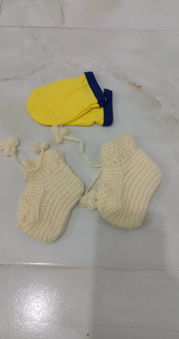 Yumuşak örgü kumaştan yapılmış, desen içermeyen sade beyaz örgü patikler. Erkek bebekler için uygundur.