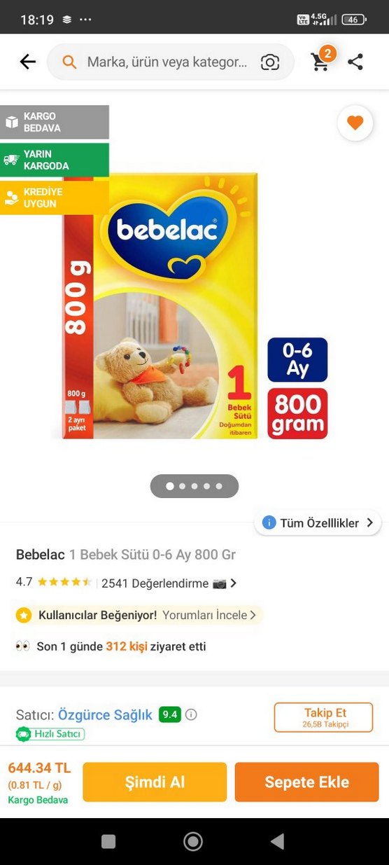 Bebelac 1 bebek sütü, 0-6 ay arası için 800 gram pakette. Yenidoğanlar için uygun ve gerekli besinleri sağlar. elimde iki tane var bebeğim 7 aylık oldu 2 numaraya geçtik elimde iki kutu var açılmamıştır