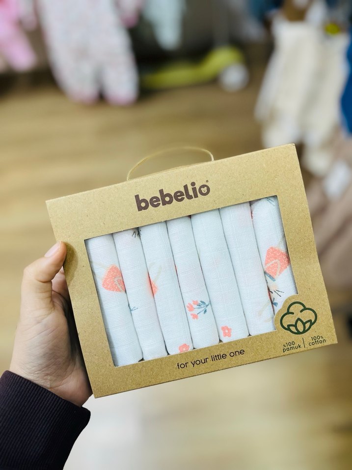 Bebelio pamuklu bebek bezleri, yumuşak pamuk ve nazik desenlerle 7 li set halinde sunulmaktadır.