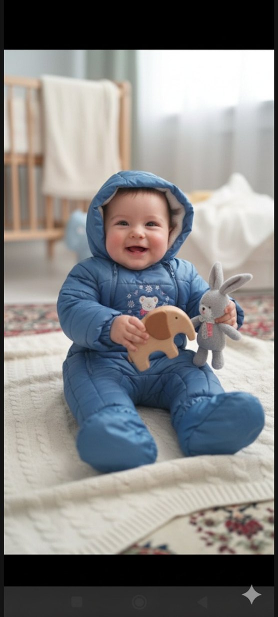 Astronot Tulum Kapüşonlu, nakış detaylı ve kürklü indigo bebek tulumu. Çıkarılabilir Eldiven ve patik takımıyla birlikte, soğuk havalar için uygun. ❄️ su ve rüzgar geçirmez