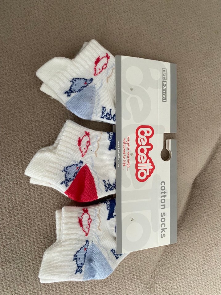 Beyaz ve gri renklerde, balık desenli pamuklu Bebetto erkek çocuk çorapları. Yumuşak ve rahat yapıya sahiptir.