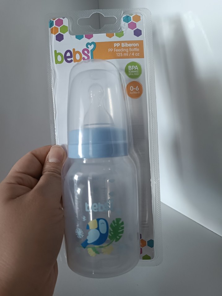 Bebs markasının 0-6 ay arası için uygun, 125 ml kapasiteli mavi PP biberonudur. BPA içermez.