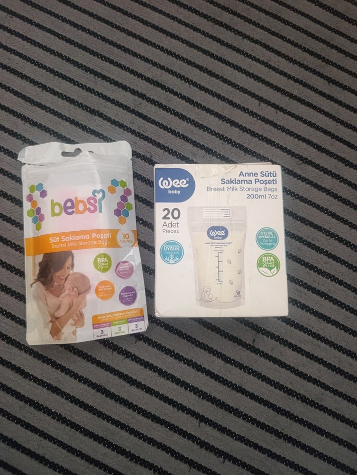 Bebs ve Wee Baby markalarına ait anne sütü saklama poşetleri, BPA içermeyen malzemeden yapılmıştır. Pastel beyaz ambalajda, 10 ve 20 adetlik paketler halinde, 200 ml kapasiteli poşetler içerir.