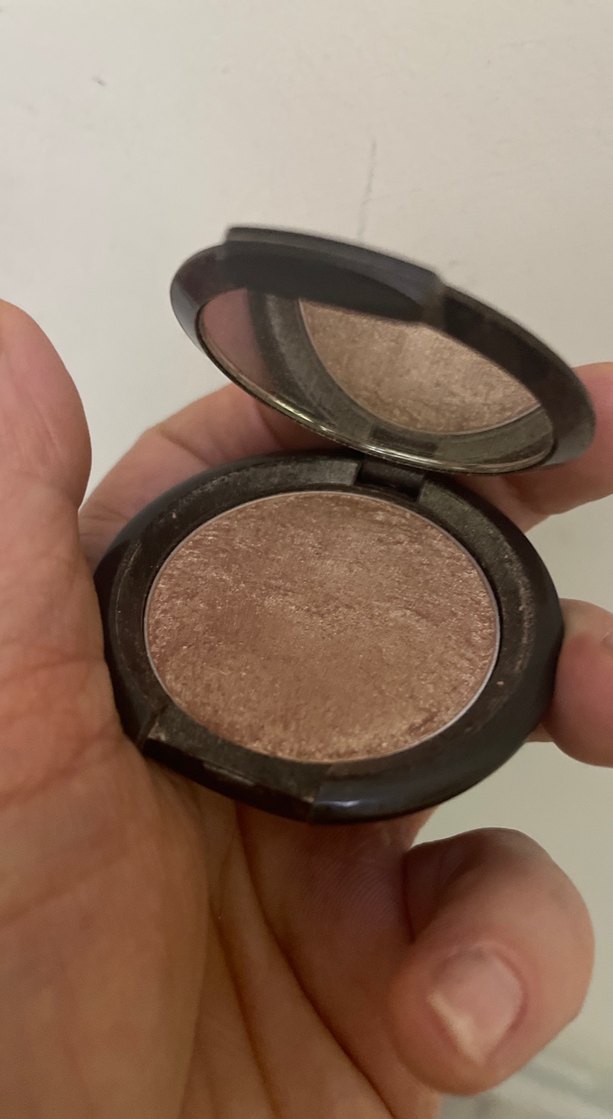 Becca Opal aydınlatıcı pudra, bej ve gri tonlarda. Ürün bilgisi ve barkod içerir. ✨