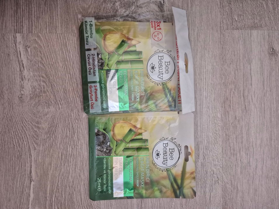 TANESİ 25 TL. Bee Beauty arındırıcı kağıt maskeler, bambu kömür tozu, ceviz özü ve pembe greyfurt özü içerir. Her pakette üç adet 25 ml maske bulunur.