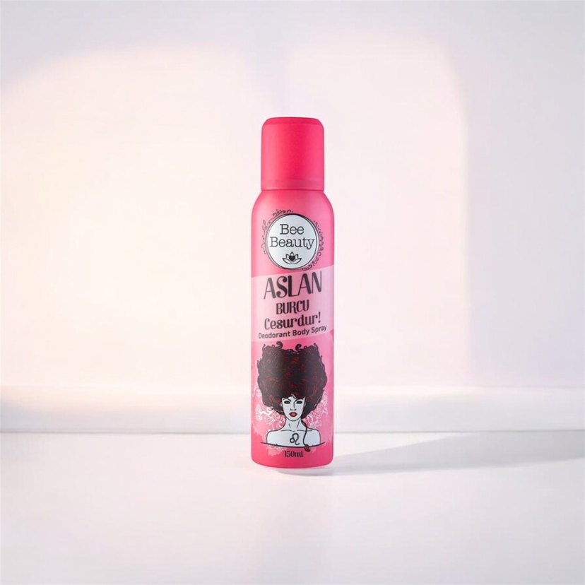 Bee Beauty Aslan Burcu deodorant vücut spreyi, 150 ml şişede ferah ve cesur bir koku sunar. Etkili koku koruması sağlar. #kadındeodorant #deodorant #vücutsprayi #ferahkoku #kalıcıkoku #bakımlıkadın #kişiselbakım #kozmetik #temizlik #günlükrutin #güzelkoku #vücutbakımı #parfümkokusu #hijyen #kadınkozmetik #freshkoku #deodorantsatış #kokusatış #bakımutünleri #ferahlatıcıkoku