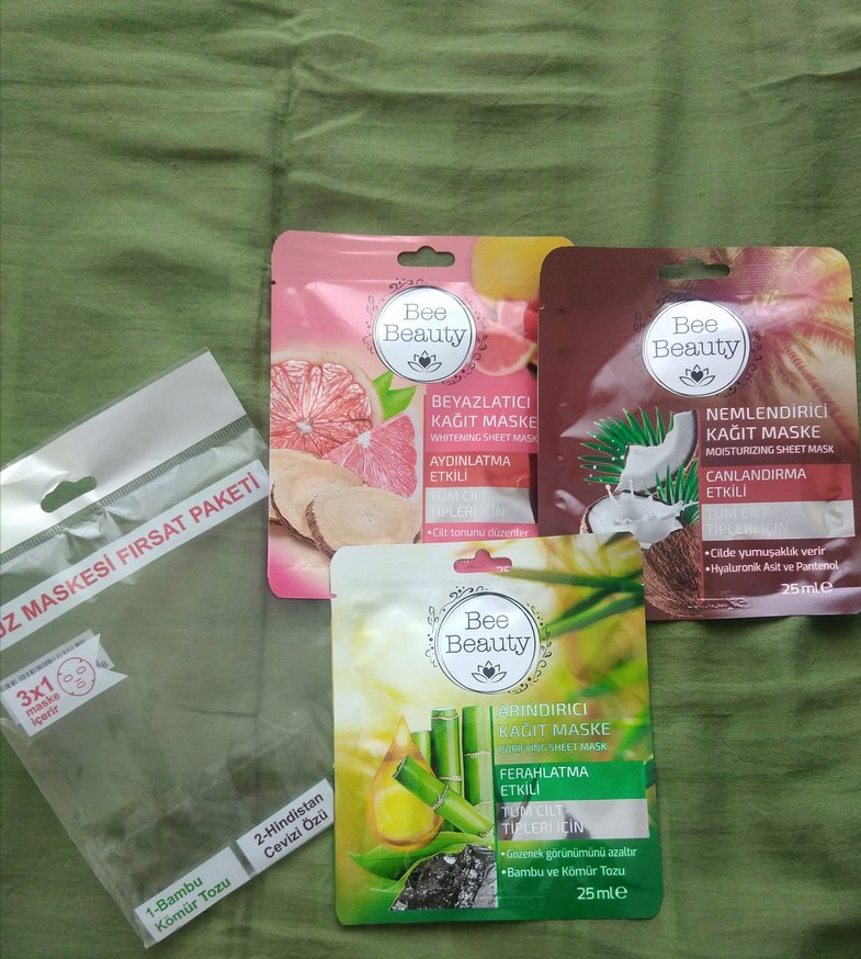 3 adet fırsat paketi. Bee Beauty kağıt maskeleri, greyfurt, hindistancevizi, bambu ve ceviz tozu gibi içeriklerle beyazlatıcı, nemlendirici ve rindirici etkiler sunar. cildi canlandırır ve ferahlatır.