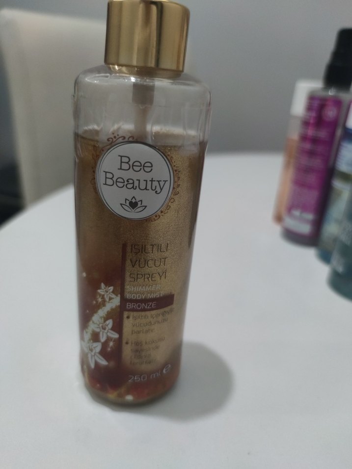 Bee Beauty ışıltılı vücut spreyi, teninize bronz bir ışıltı ve yumuşak bir parlaklık sağlar. 250 ml şişede sunulur. ✨