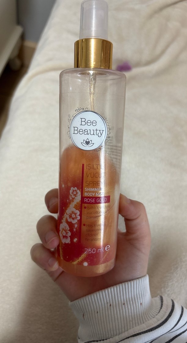 Bee Beauty 250 ml ışıltılı vücut spreyi, cilde parlaklık katar. Rose Gold renk tonunda. ✨