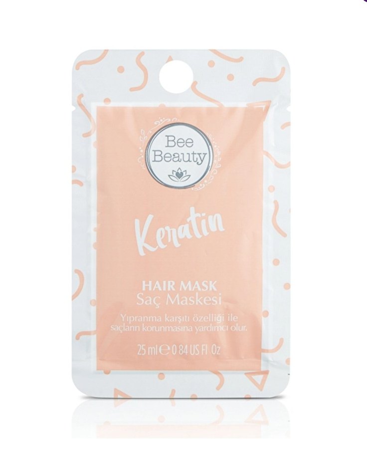 Bee Beauty Keratin Saç Maskesi, yıpranma karşıtı özelliği ile saçların korunmasına yardımcı olur. 25 ml pratik kullanımlık kutuda.