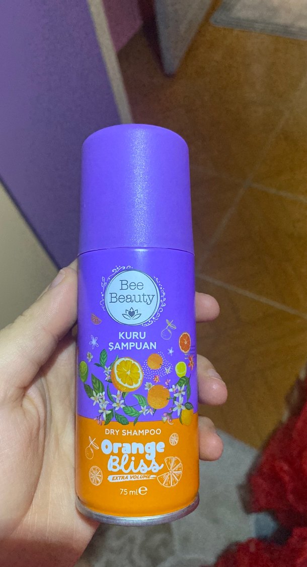 Bee Beauty Orange Bliss kuru şampuan, 75 ml şişede ekstra hacim ve taze portakal kokusu sunar. Bi kere kolandı