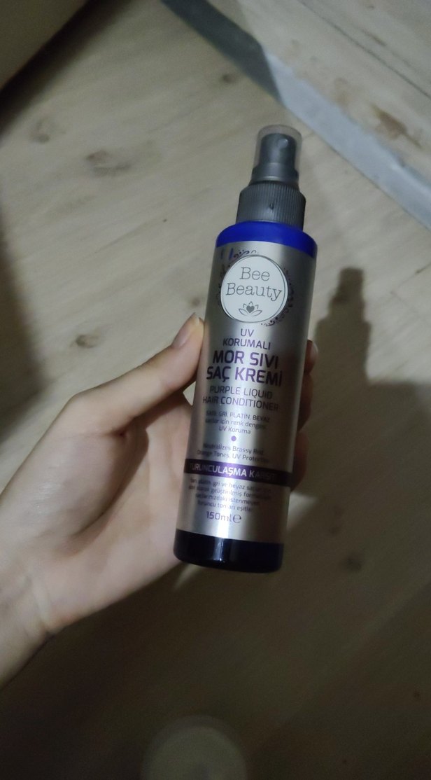 Bee Beauty mor sıvı saç kremi UV koruyucu içerir, saçı yumuşatır. 150 ml sprey şişede sunulur.