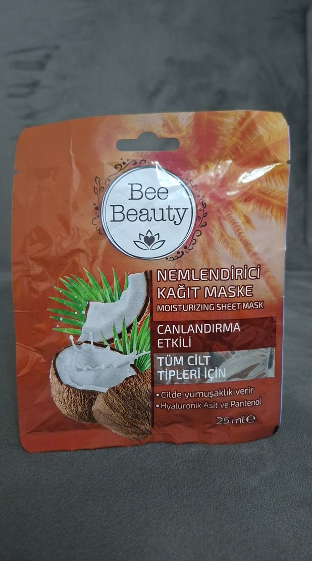 Bee Beauty nemlendirici kağıt maske, hyaluronik asit ve pantenol içerir. Tüm cilt tipleri için canlandırıcı ve yumuşatıcı etki sağlar. 25 ml.