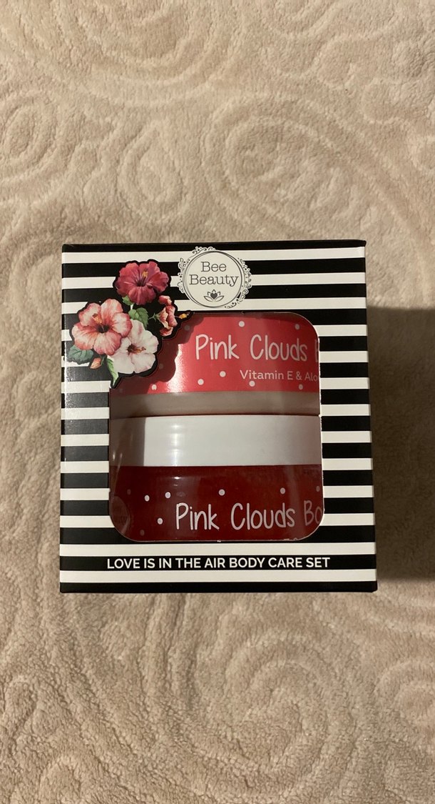 Bee Beauty Pink Clouds vücut bakım seti, Vitamin E ve aloe içeren ürünlerle cilt beslemesi sağlar. 'Love is in the Air' koleksiyonunun bir parçasıdır.