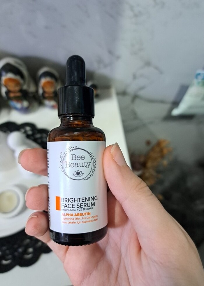 Bee Beauty aydınlatıcı yüz serumu yarısı duruyor.