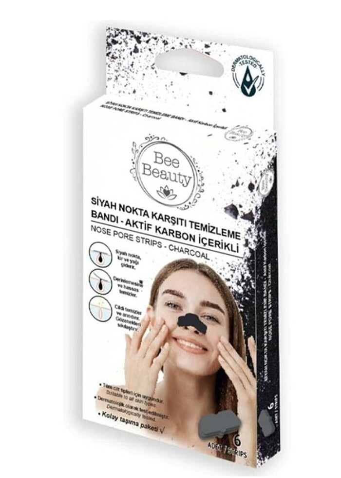 BEE BEAUTY SİYAH NOKTA KARŞITI TEMİZLEME BANDI AKTİF KARBON İÇERİKLİ - NOSE PORE STRIPS CHARCOAL, içinde 6 adet bant vardır.