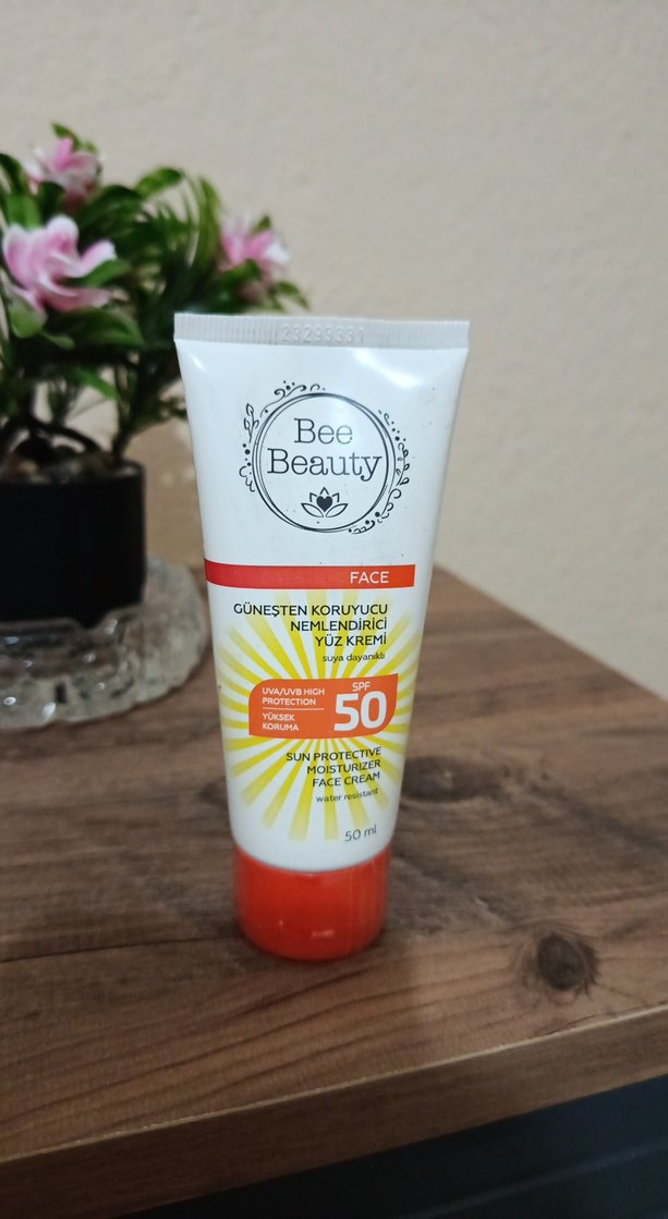 Bee Beauty yüz kremi, SPF 50 güneş koruması sağlar ve cildi nemlendirir. Suya dayanıklıdır, UVA ve UVB ışınlarına karşı korur. Hiç kullanılmadı jelatinli severek kullanıyorum stoğu olduğu için satıyorum.