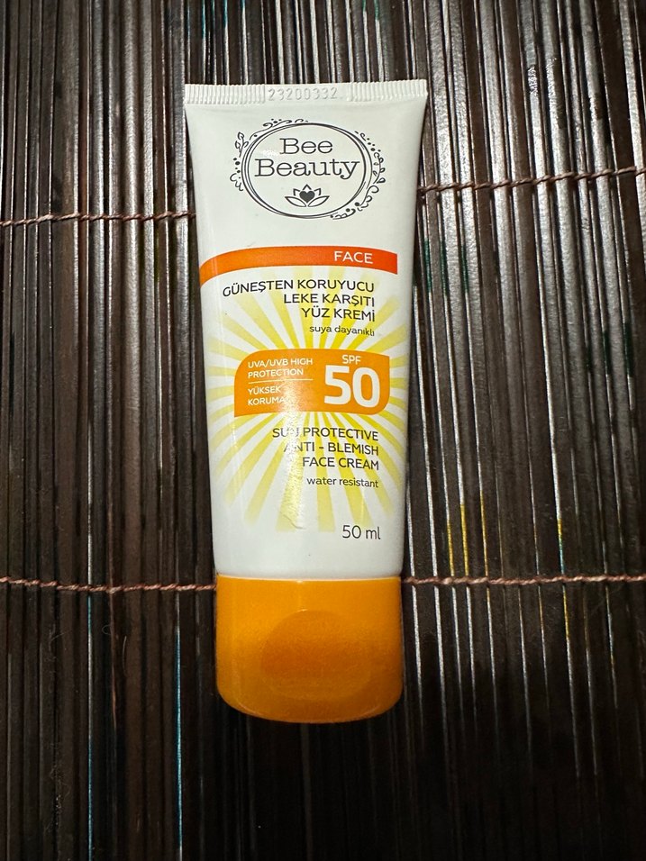 Yalnıca bir kere yüzde kullanıldı, içi doludur. Bee Beauty SPF 50 yüz kremi, yüksek güneş koruması sağlar ve leke oluşumunu önlemeye yardımcı olur. Suya dayanıklıdır.
