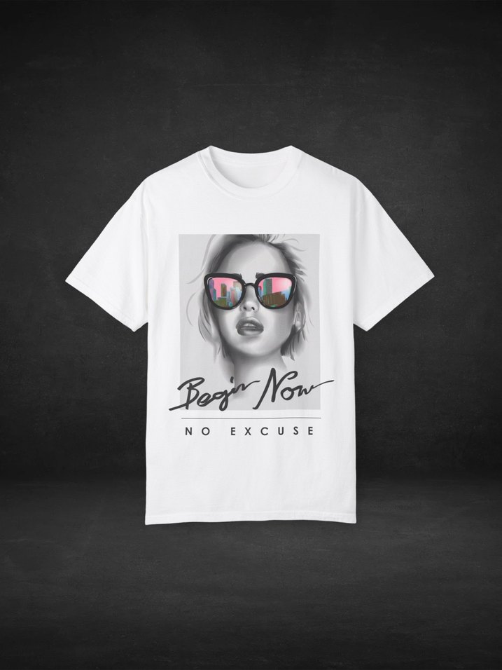 Begin Now | Beyaz Bisiklet Yaka Baskılı T-Shirt