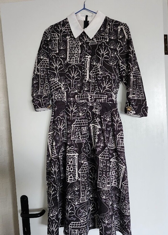Behçetti marka orta boy desenli ofis şıklığında elbise siyah beyaz 38-40 beden
