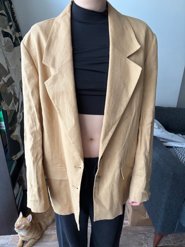 adL mağazasından almıştım Bej renkte, keten kumaştan yapılmış bol kesim 38 beden