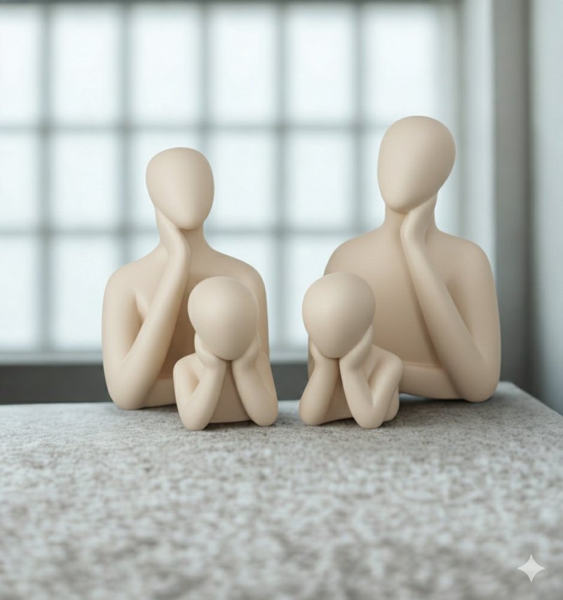 Bej 2 Çocuklu Dekoratif Aile Biblosu