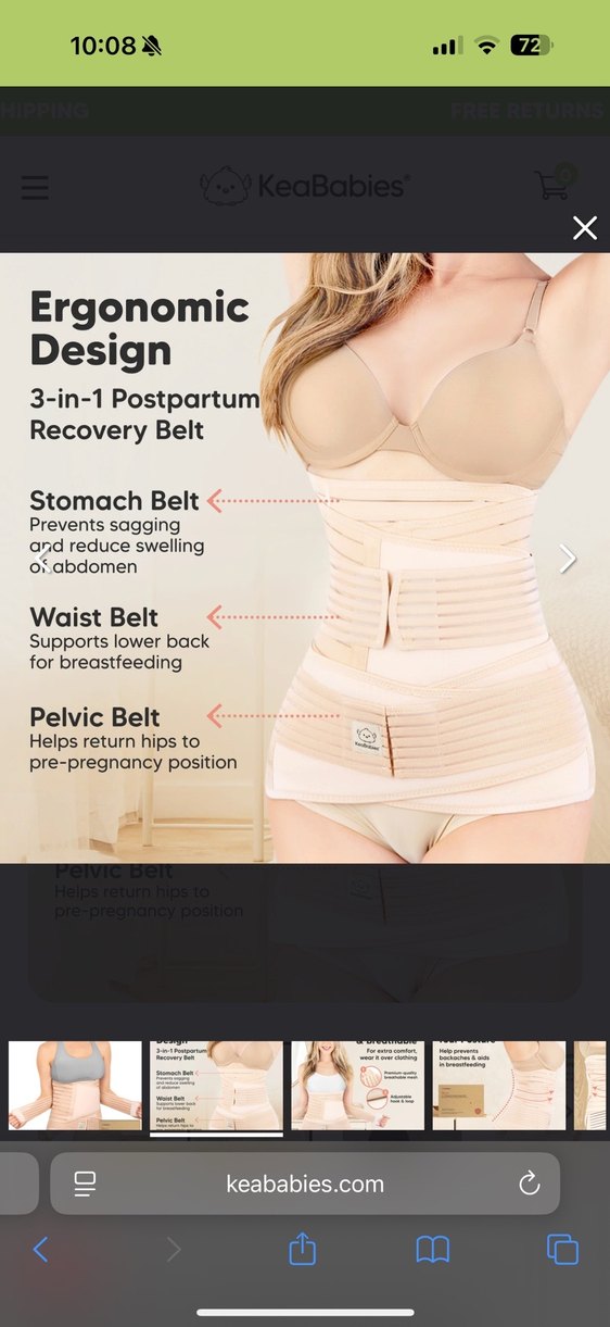 Bej renkli, ergonomik 3'ü 1 arada tasarıma sahip, emzirme ve doğum sonrası toparlanma için karın, bel ve pelvik destekli korsedir.