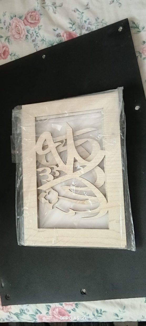 Bej ahşap çerçevesi ve ince işçilikle kesilmiş desenleriyle hafif ve sanatsal bir dekoratif tablo.