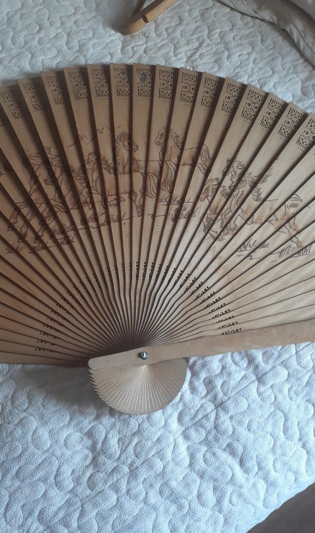 Bej Ahşap El Yelpazesi atlar figürlü