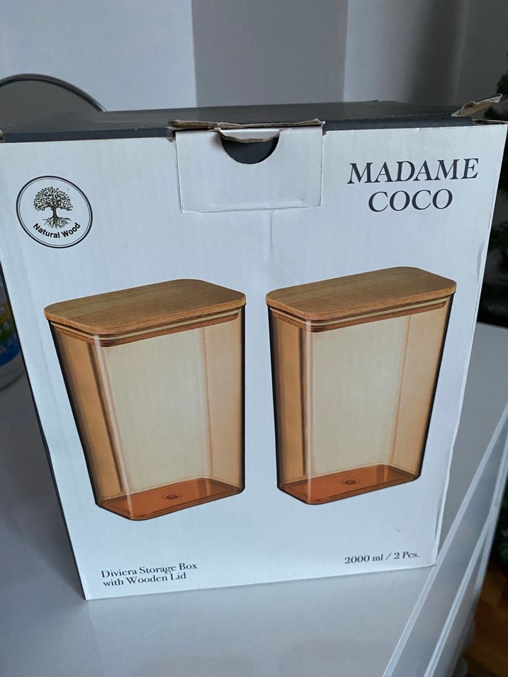 Ahşap kapaklı, bej renkli iki dolap düzenleyici seti. Doğal ahşap dokunuşlu, 2000 ml kapasitelidir.