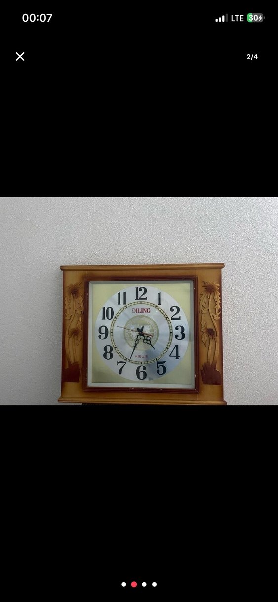 Bej renkte, ahşap çerçeveli duvar saati, siyah rakamları ve dekoratif detayları ile dikkat çekiyor. 2 ve 6 rakamları net görünüyor. ️